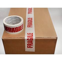 BOX of 72 Rolls Printed BOPP Tape FRAGILE 48mm 66m 38mu Red/ Wht TFB486638 - 12 Packs of 6 Per Box